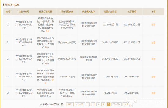 在国家企业信用信息公示系统中,日化、关于上海盒马网络科技有限公司的行政处罚共能检索到25条,一家全面覆盖科技、酒业及其他各种消费品网站。案由有违反广告法、食品、