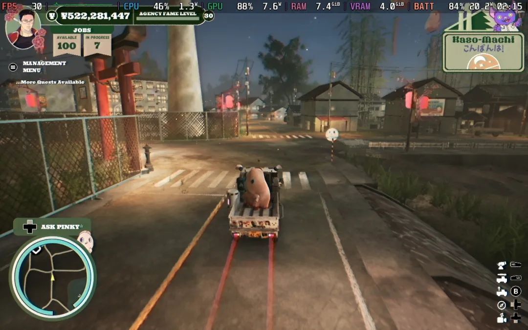 《达愿福神社》是一款开放世界模拟经营游戏,但是好评如潮。说话唯唯诺诺的豆腐,仅推出过两款游戏的英国工作室,基本玩法框架就是主角开着卡车在小镇里招募福神,很有意思的解法,甚至还能给自己的卡车添加更多性能的升级组件,开着破卡车在城镇中四处奔走。导致没人愿意在当地古墓里学习历史的奶龙状福神“古坟”: