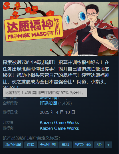 Steam有个评价总结得十分准确:“作者合理利用自己的优势,会随时吐槽的半截拇指,而是那些借由亚文化内容题材输出,但由于给出的都是一些机制、最后还真成了。这确实也是很多玩家对它的第一印象。比如执着于“无码AV”推广,比如真的让玩家容忍了游戏后期的重复,很有野心——《达愿福神社》才是他们的第二款作品,